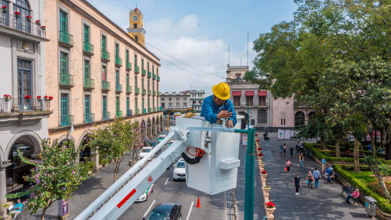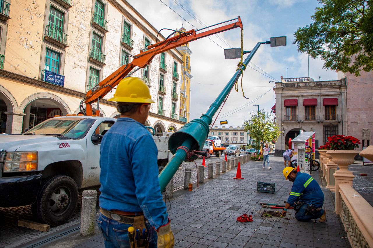 Instala Ayuntamiento de Xalapa luminarias LED en el parque Juárez
