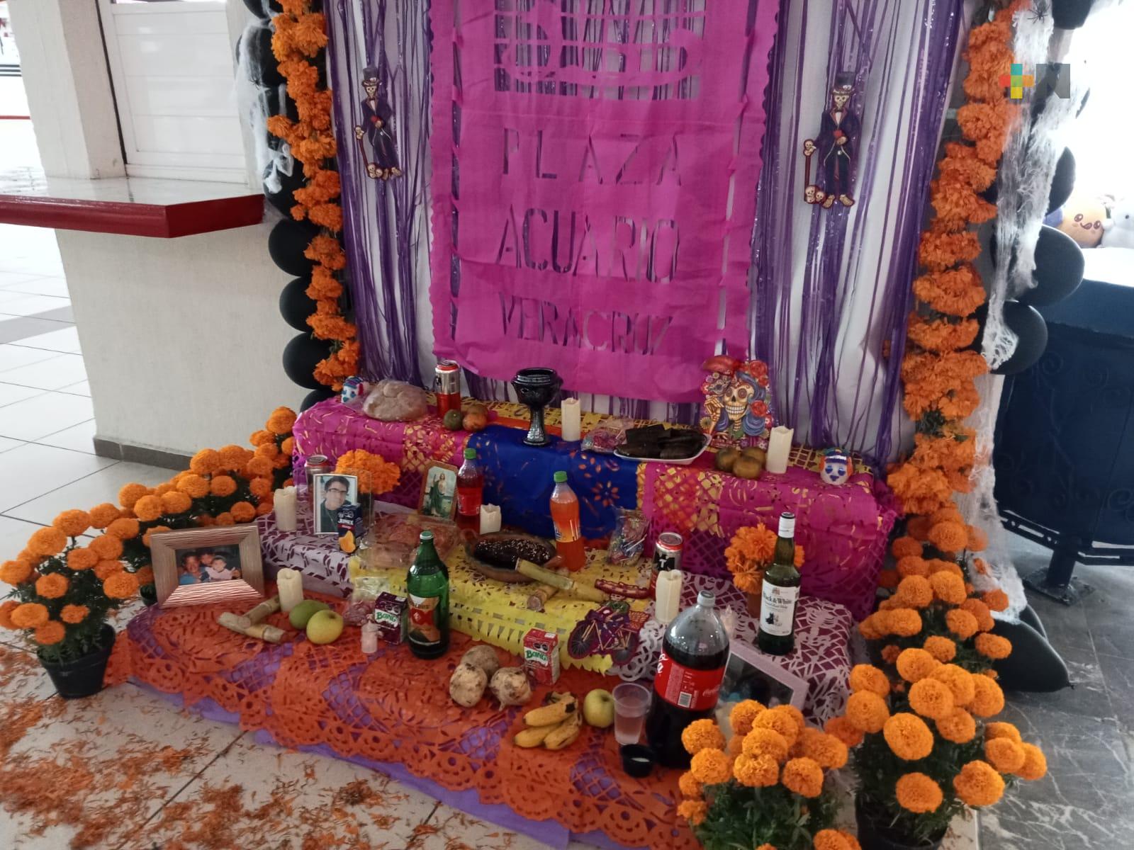 Veracruz, Ver.- Para mantener vivas las tradiciones mexicanas en la plaza Acuario del municipio de Veracruz, comerciantes y personal administrativo colocaron el tradicional altar de muertos, en donde resaltaron las diferentes regiones de la entidad veracruzana.