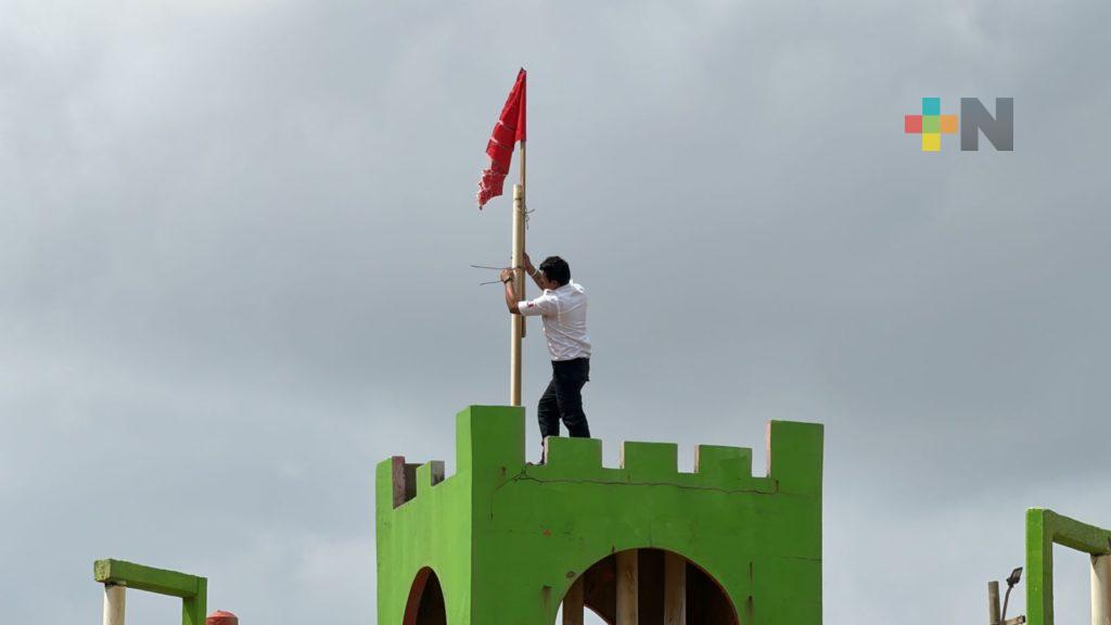 Coatzacoalcos, Ver.- La Dirección de Protección Civil (PC) en Coatzacoalcos instaló la bandera roja en la playa de Coatzacoalcos este miércoles, advirtiendo a los bañistas del peligro por el fuerte oleaje provocado por el frente frío número 42.