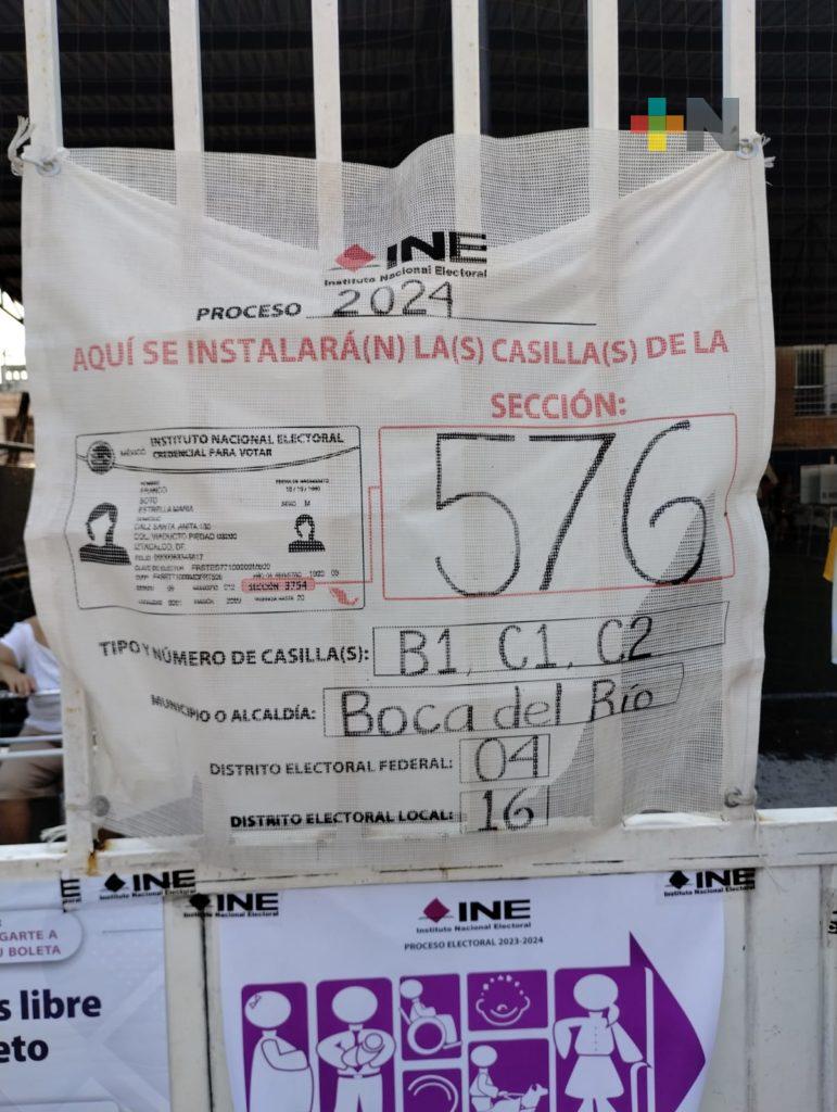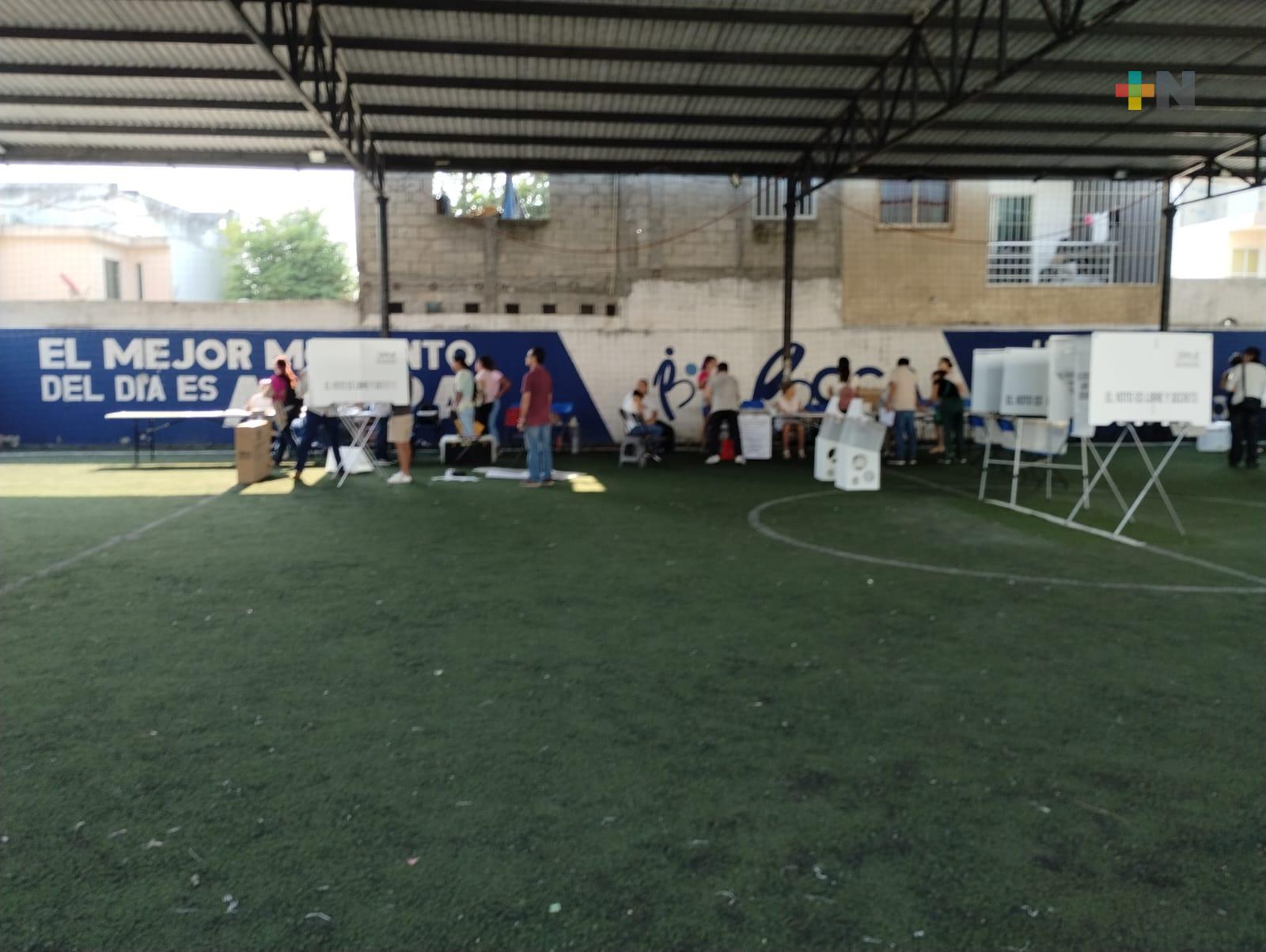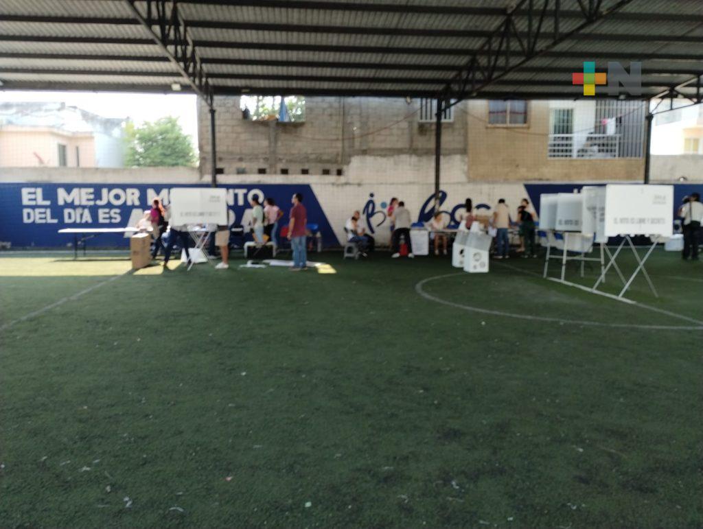Veracruz, Ver.- La casilla ubicada en la unidad deportiva de «El morrito» en el municipio de Boca del Río permanece en proceso de instalación y registra una larga fila de personas esperando el momento de poder emitir su sufragio.