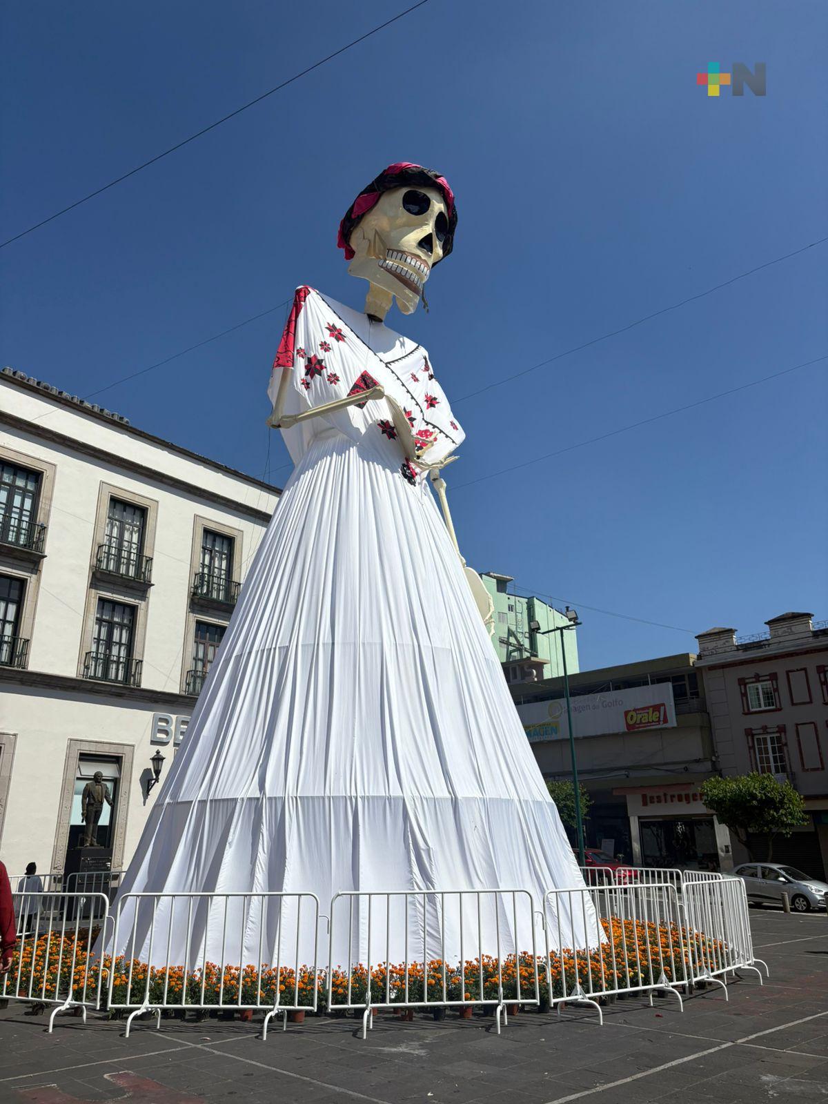 Xalapa, Ver.- En Xalapa se instaló la monumental catrina en Plaza Lerdo. Con una altura de 15 metros y elaborada por el artesano de Xico, José Luis Zacarías, es admirada por las y los transeúntes.