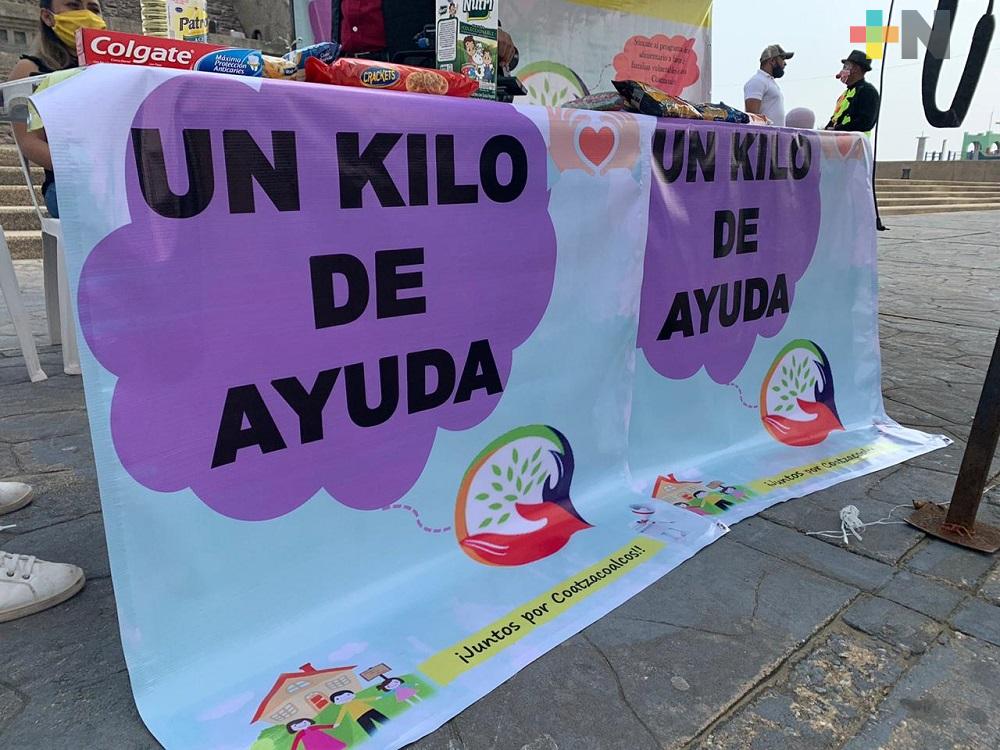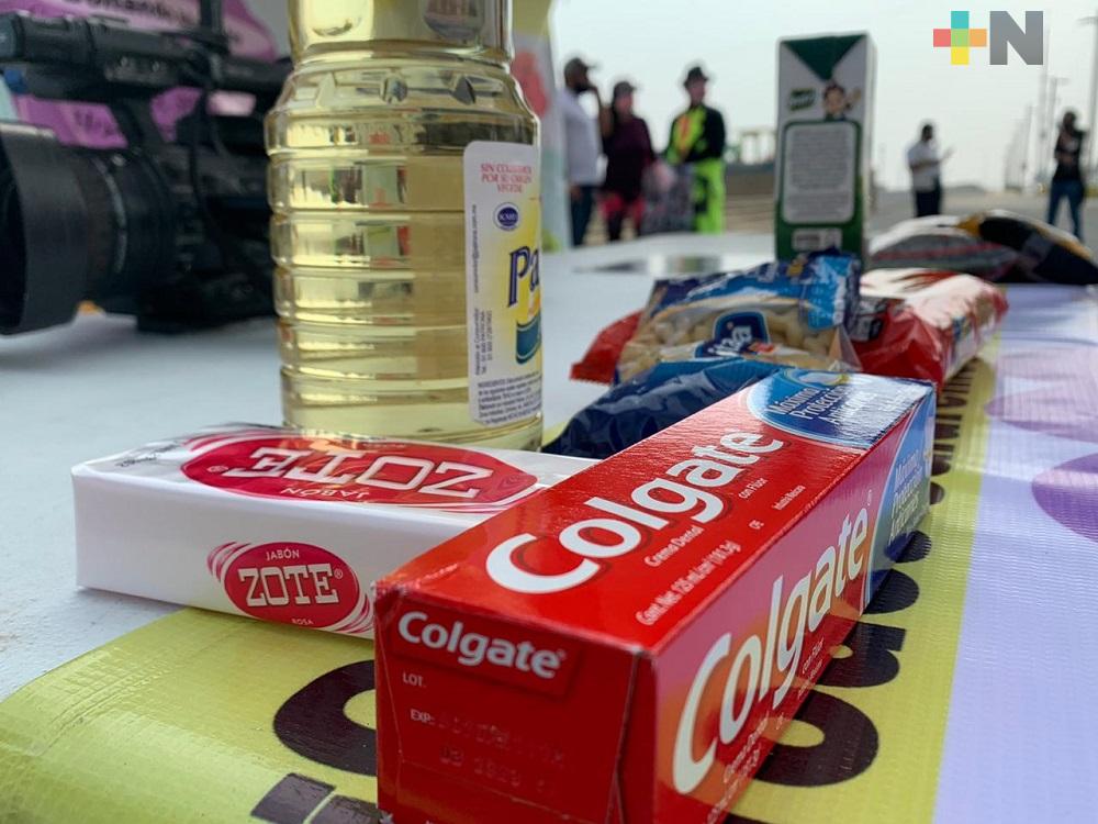 Instalan centro de acopio de alimentos en pirámide de malecón de Coatzacoalcos