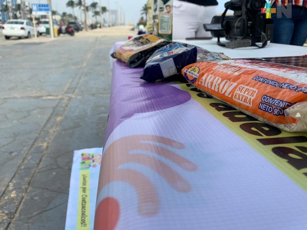 Coatzacoalcos, Ver.- En la pirámide del malecón costero se instaló un centro de acopio de despensas para personas que están padeciendo la falta de alimentos en Coatzacoalcos.