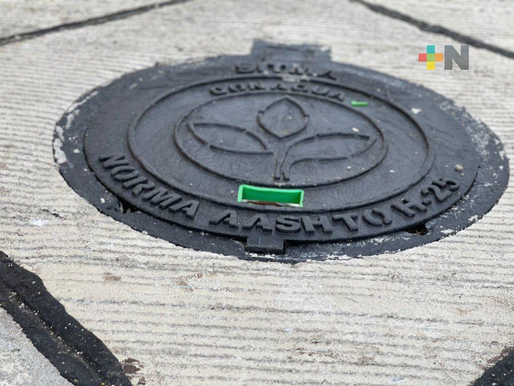 Instalan tapas de drenaje de PVC en Coatzacoalcos para detener sus robos