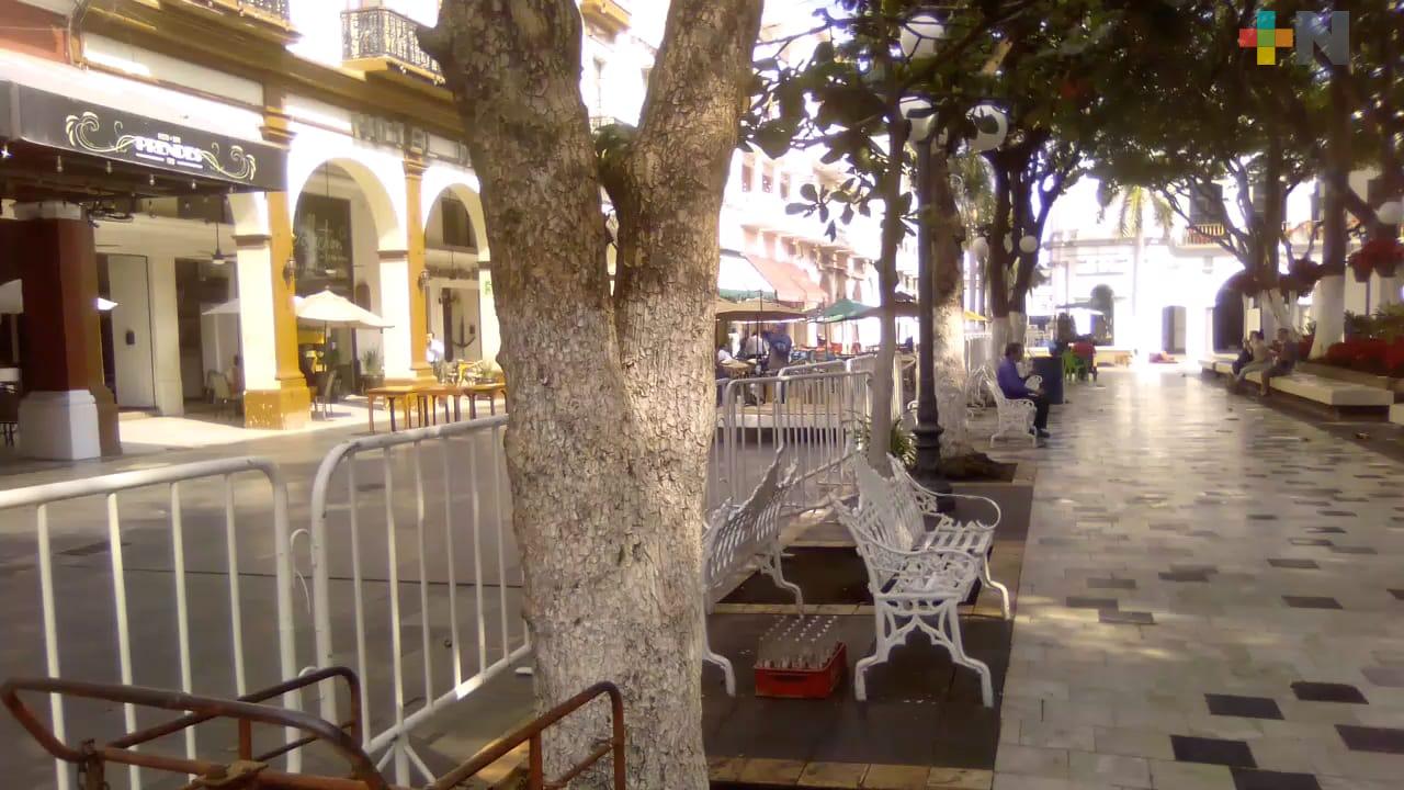 Instalan vallas en zona de Los Portales de Veracruz, para evitar aglomeraciones