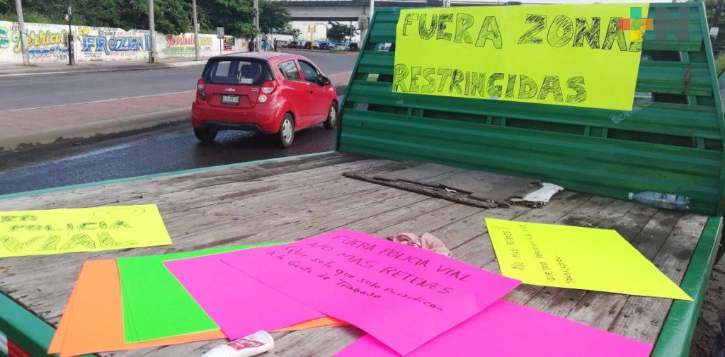 Integrantes de AMOTAC se manifiestan contra agentes de Tránsito Municipal de Boca del Río
