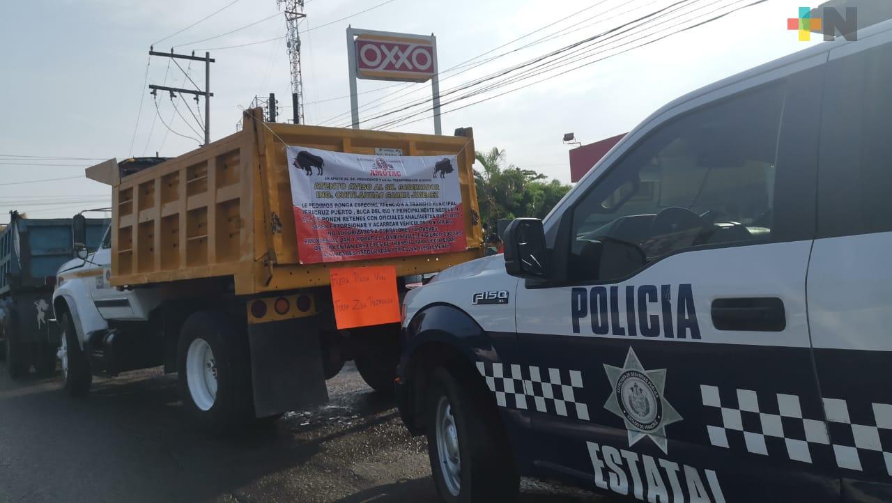 Los camioneros se manifestaron sobre la carretera Veracruz-Medellín, a la altura del fraccionamiento Las Vegas de Boca del Río.