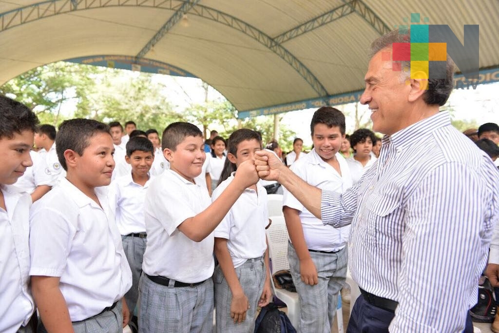 También visitó la Secundaria “General José María Iglesias”, donde entregó mesabancos, equipos de cómputo, proyectores de video y amplificadores de sonido.