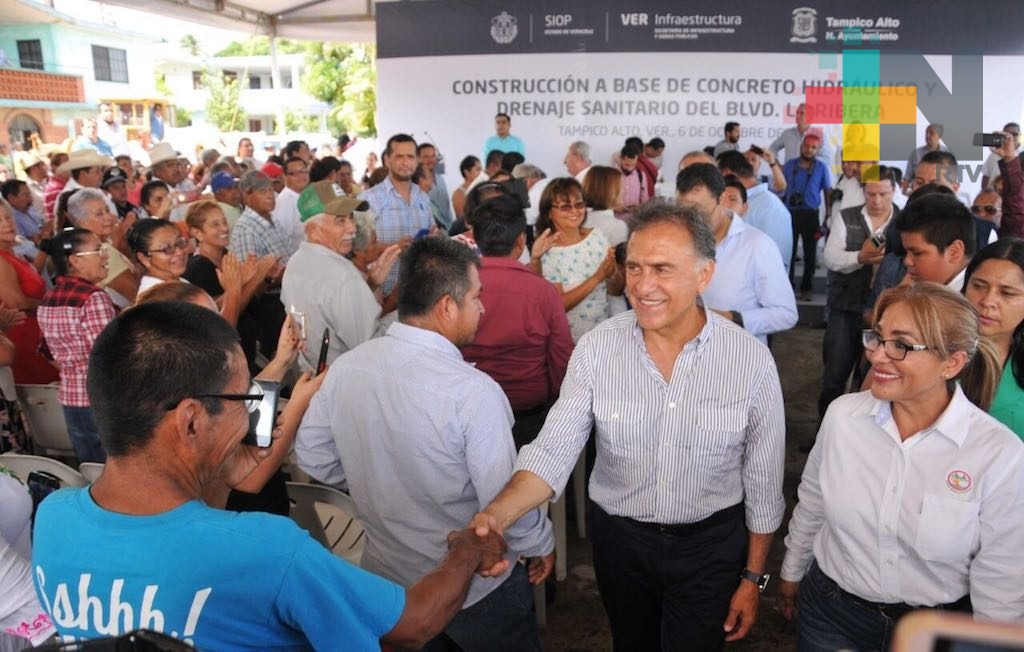 Posteriormente, el Gobernador Yunes se trasladó a Tampico Alto, donde dio inicio a la construcción a base de concreto hidráulico de 800 metros lineales del bulevar de La Ribera, que contará con drenaje sanitario; obra que impulsará el desarrollo turístico y productivo de esta zona.