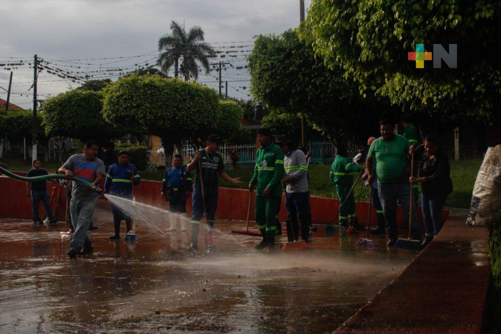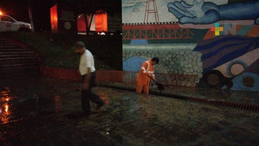 Aunque los trabajos iniciaron desde la noche del domingo, este lunes, los trabajadores de Servicios Municipales continuaban laborando en la zona para limpiar el lodo y basura dejada por la tormenta.