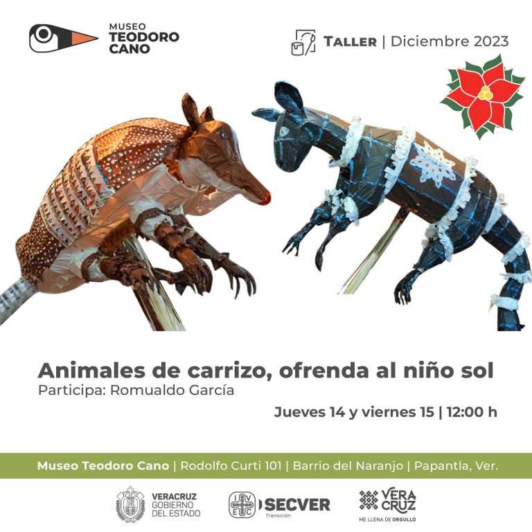 Xalapa, Ver.- El Instituto Veracruzano de la Cultura invita al público a participar en el taller de artes populares Animales de carrizo, ofrenda al niño sol, coordinado por el maestro artesano Romualdo García. La actividad se llevará a cabo de forma gratuita el jueves 14 y viernes 15 de diciembre, de 12:00 a 17:00 horas, en la sala de talleres del Museo Teodoro Cano, recinto ubicado en el centro de la ciudad que perfuma al mundo.