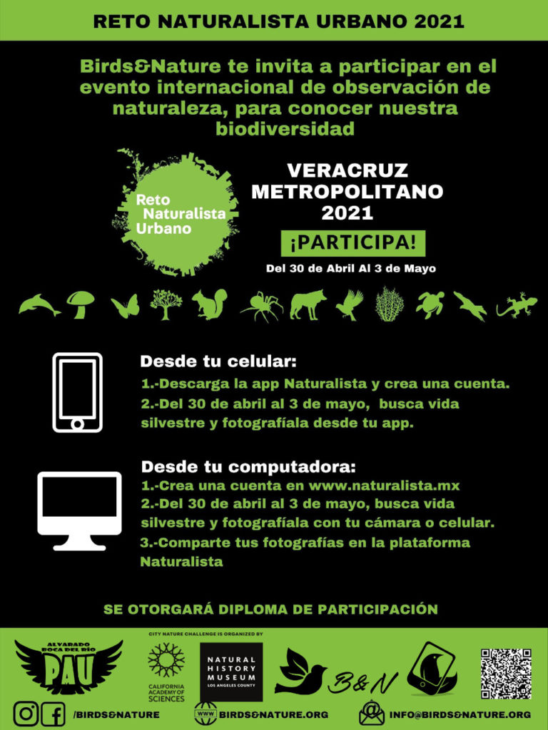 Veracruz, Ver.-Cada año se realiza el reto internacional naturalista urbano. La invitación esta abierta a toda persona de cualquier edad de los municipios de Veracruz, Boca del Río, Alvarado y Medellín de Bravo que desee observar las diferentes especies de fauna y flora silvestres que se encuentran en su alrededor, señala Paula Pineda, presidenta de la asociación civil Birds and Nature.
