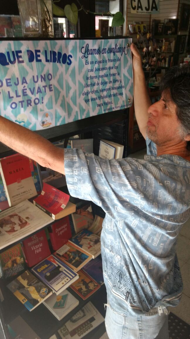 “Esta es una idea que ya tenía tiempo desarrollando y ante la situación que estamos viviendo en el país, de que la gente no tiene dinero para comprar libros, lanzamos una iniciativa desde el año pasado que tiene que ver con el trueque libros y yo veo esta parte de la confianza que hay que darle al otro, en cuando a que traiga un libro que sea atractivo también para compartirlo”, dijo Eligio Ramírez, propietario de la Rueca.