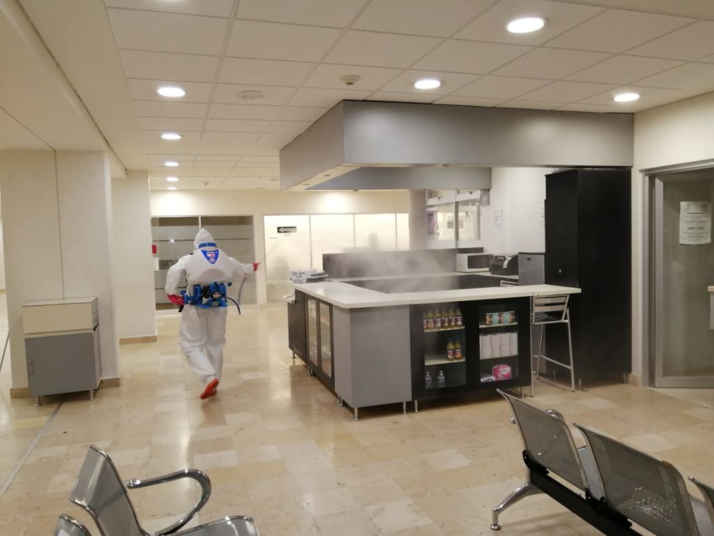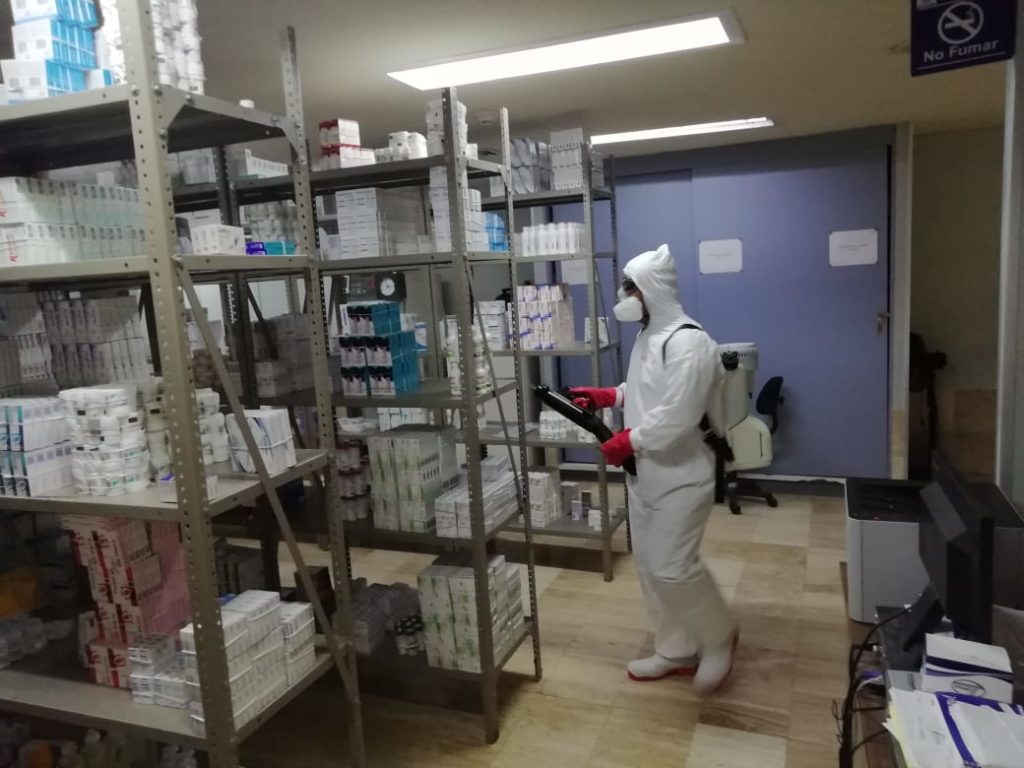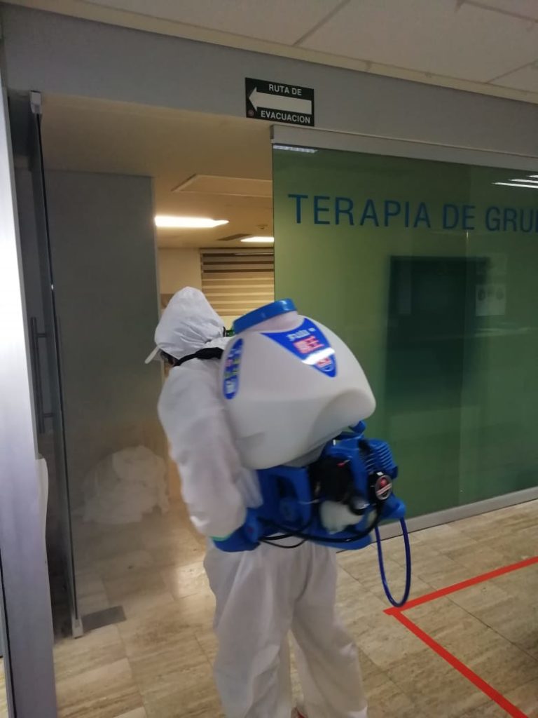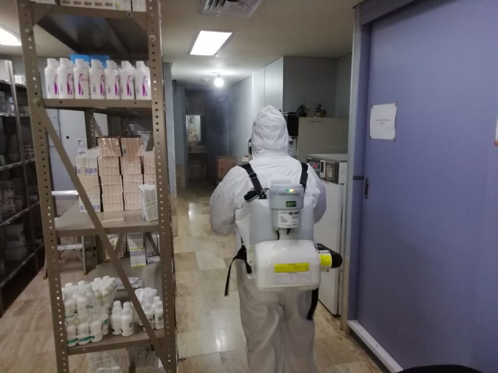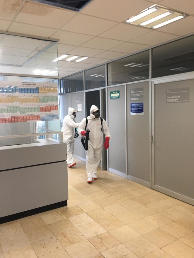 El proceso de aplicación del producto consiste en tres etapas y dura aproximadamente dos horas para aplicar el producto que elimina hasta el 99.9 por ciento de gérmenes o agentes microbianos que se encuentran en el ambiente y que pongan en riesgo a la población derechohabiente, para lo cual realizaron un barrido general mediante vapor con máquinas especializadas y siguiendo los protocolos de la comisión federal para protección de riesgos sanitarios y la agencia de protección del ambiente.