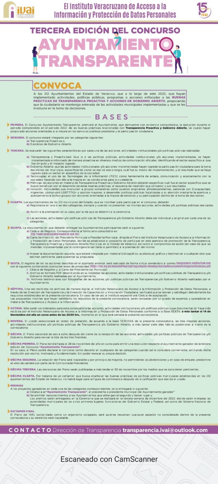 En aras de reconocer las buenas prácticas de Transparencia, el pleno del IVAI aprobó el acuerdo para emitir la presente convocatoria.