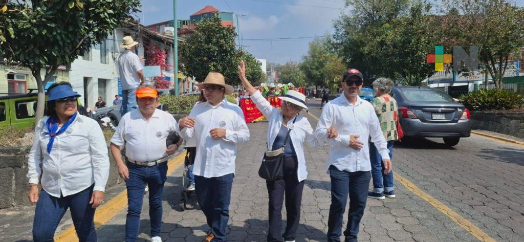 Xalapa, Ver.- Maestras que por años dieron clases en el Jardín de Niños “Esperanza Osorio” de Xalapa, exalumnos y extrabajadores junto con el personal docente, padres de familia y los niños que actualmente asisten a este plantel desfilaron por las calles del centro de la ciudad como parte de los festejos por su 80 aniversario.