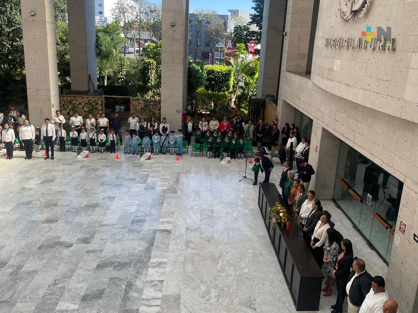 Xalapa, Ver.- En el marco del Día de la Bandera, a conmemorarse el próximo 24 de febrero, diez jardines de niños tanto públicos como privados participaron en una demostración de escoltas en el Congreso del Estado.