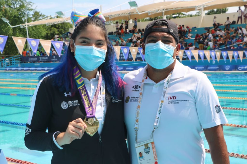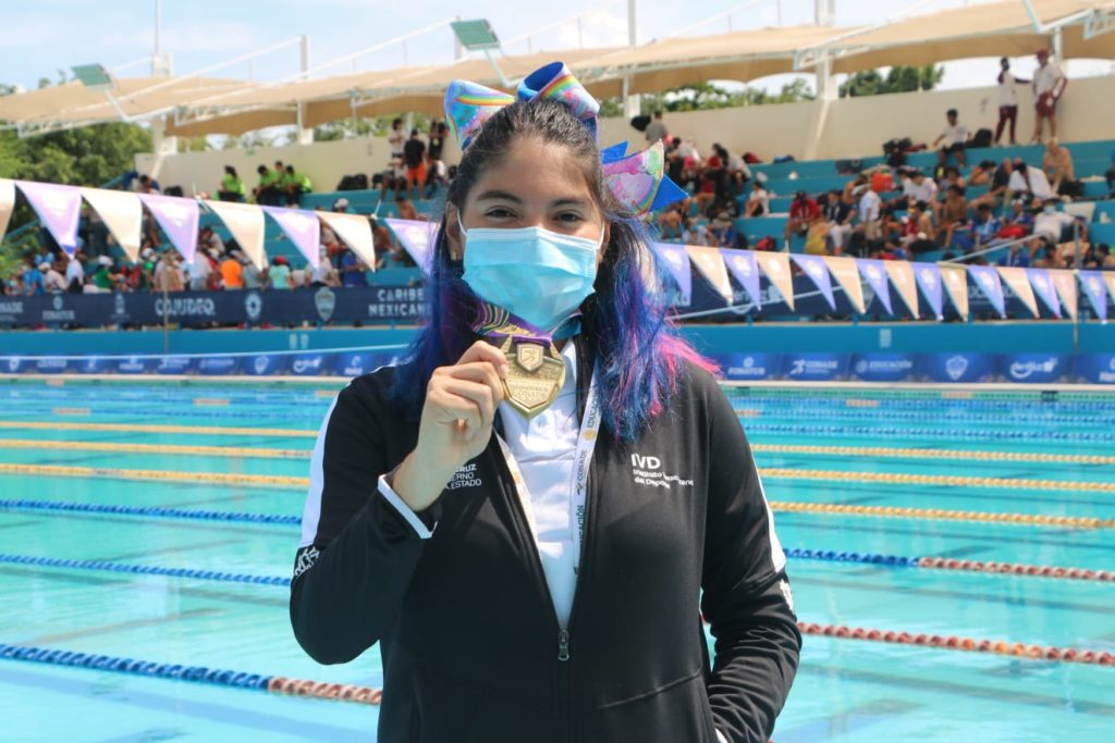 Cancún, Quintana Roo.- Cuatro medallas de oro, dos más de plata y una de bronce para un total de siete preseas, es el saldo conseguido por la delegación de Veracruz en la primera jornada de la disciplina de Para Natación, dentro de Juegos Para Nacionales CONADE 2021 con sede en Cancún.
