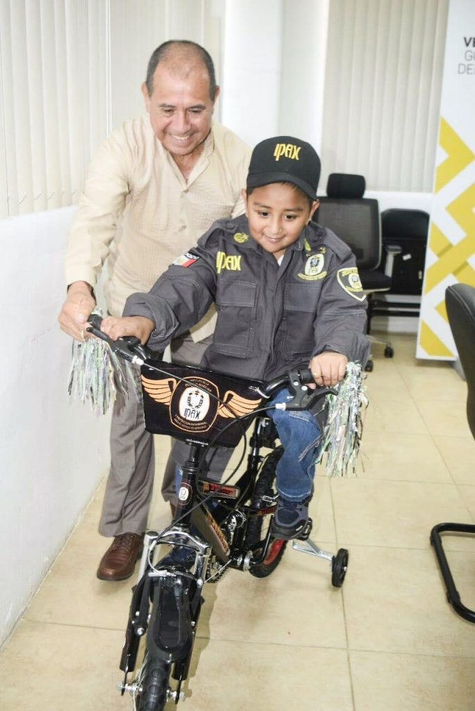 El policía Josué, estuvo acompañado por su mamá, la señora Yolanda Hernández Rizo, quien fue testigo y agradeció la entrega que le hizo el titular de este instituto,un uniforme de policía del IPAX justo a su medida y también una bicicleta.