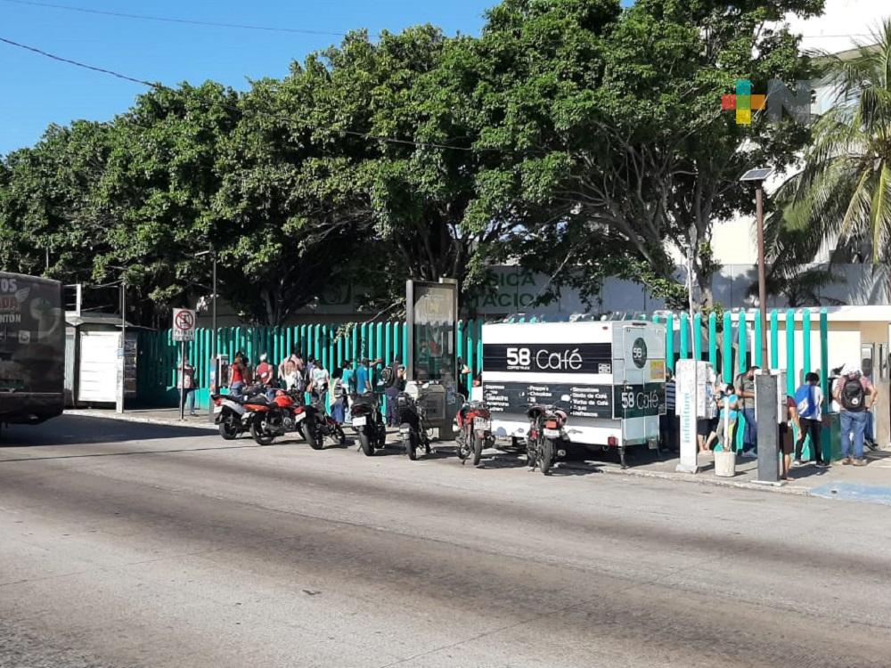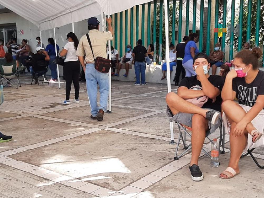 Jóvenes hacen larga fila para solicitar prueba de covid, en IMSS del puerto de Veracruz