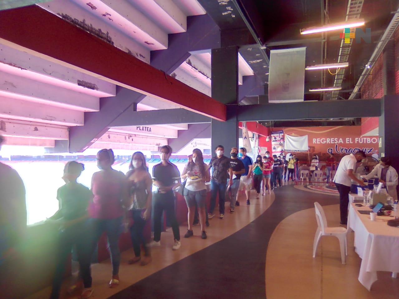 En uno de los módulos de aplicación, el Estadio Luis Pirata Fuente, acudieron un número importante de ciudadanos de este sector, para tener la segunda vacuna de «Pfizer».