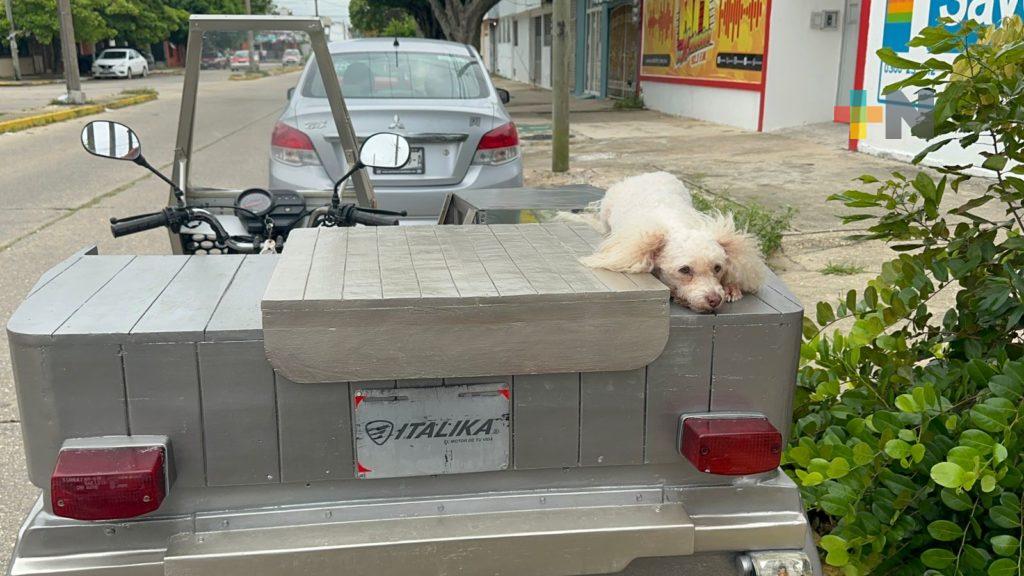 Coatzacoalcos, Ver.- Un trabajador jubilado de Coatzacoalcos decidió que su perrita Dina lo acompañe a cualquier lugar al que vaya, por lo que decidió adaptar con material reciclado su motocicleta.