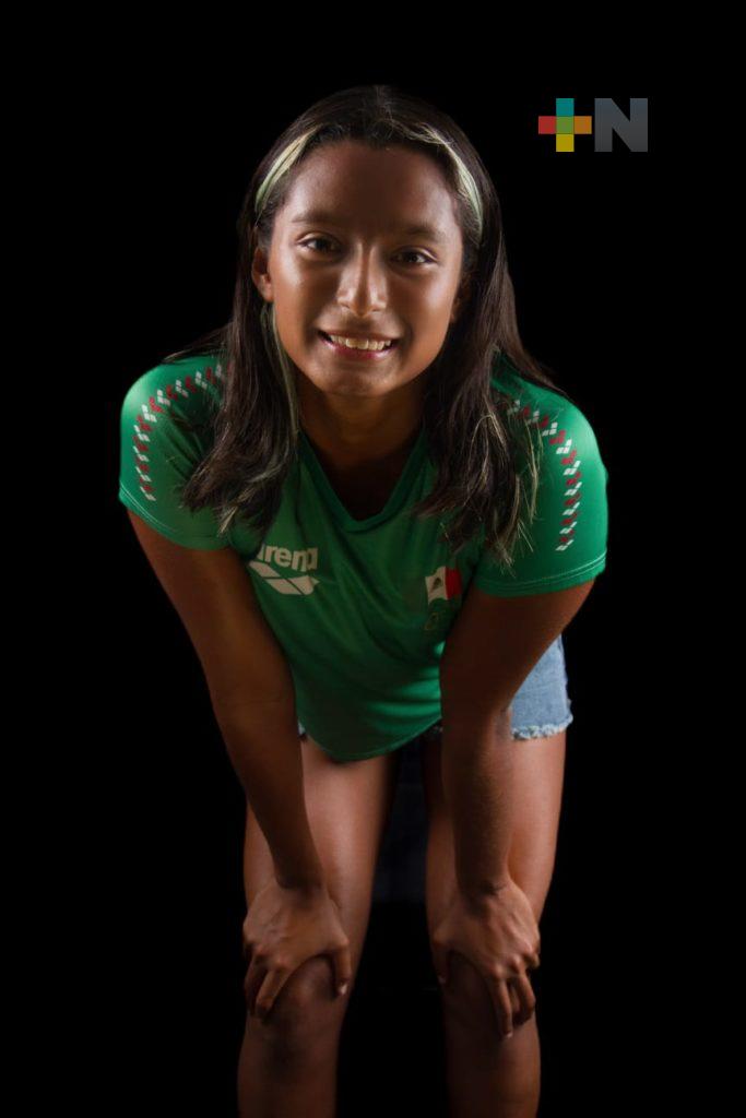 Desde los nueve años aprendió a nadar y desde los 13 años compite al máximo nivel, combinando la escuela con el deporte, pues desde temprano asiste a sus clases en segundo semestre de bachillerato, para después asistir a entrenar, regresar a la escuela y en la tarde continúa con sus actividades deportivas.