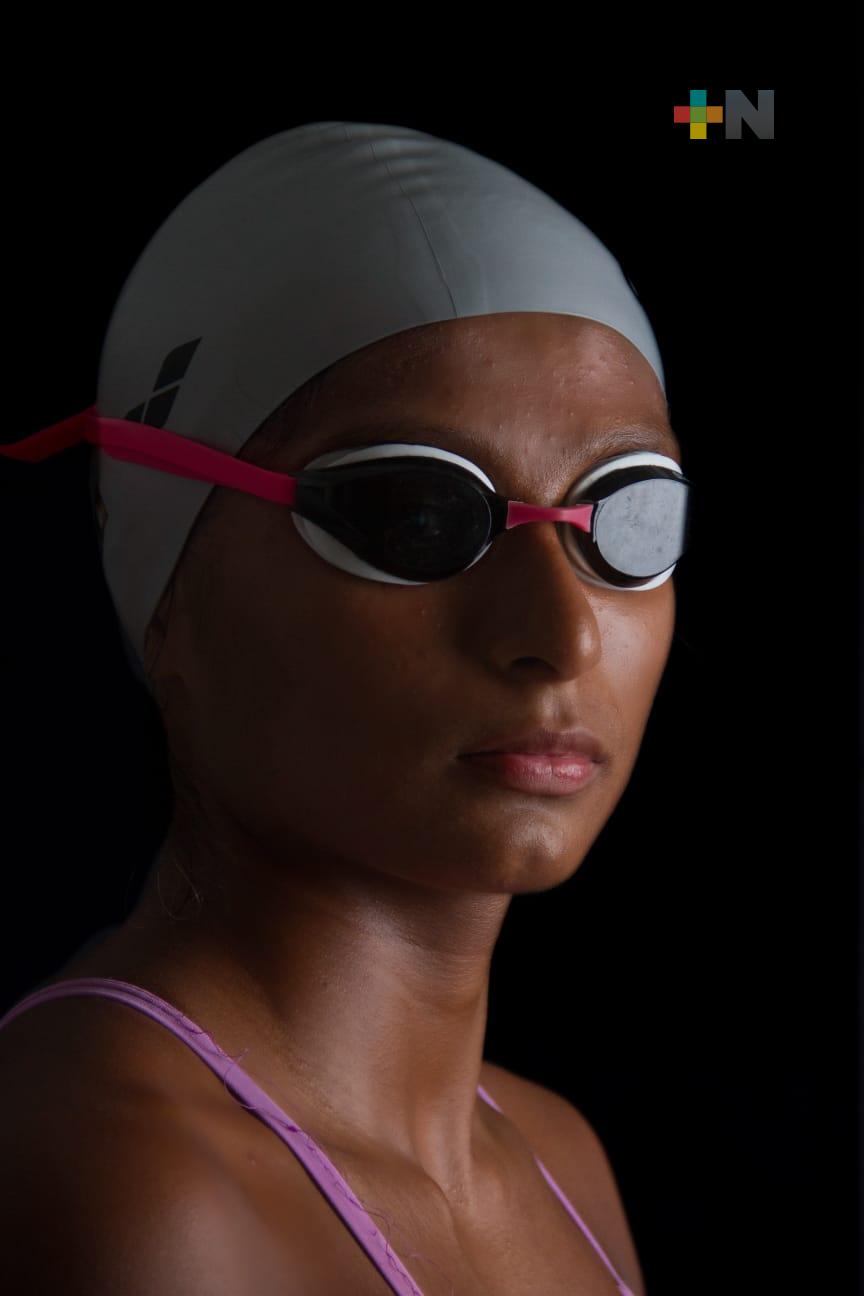 Desde los nueve años aprendió a nadar y desde los 13 años compite al máximo nivel, combinando la escuela con el deporte, pues desde temprano asiste a sus clases en segundo semestre de bachillerato, para después asistir a entrenar, regresar a la escuela y en la tarde continúa con sus actividades deportivas.