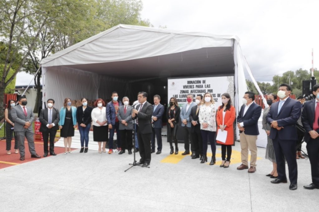Ciudad de México.- El presidente de la Mesa Directiva de la Cámara de Diputados, Sergio Carlos Gutiérrez Luna, participó en el acto de Donación de víveres para las zonas afectadas por las lluvias en los estados de Hidalgo, Puebla y Veracruz, realizado en el Palacio Legislativo de San Lázaro.