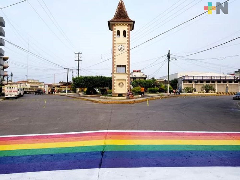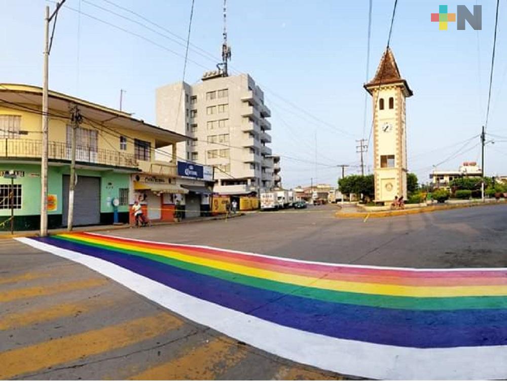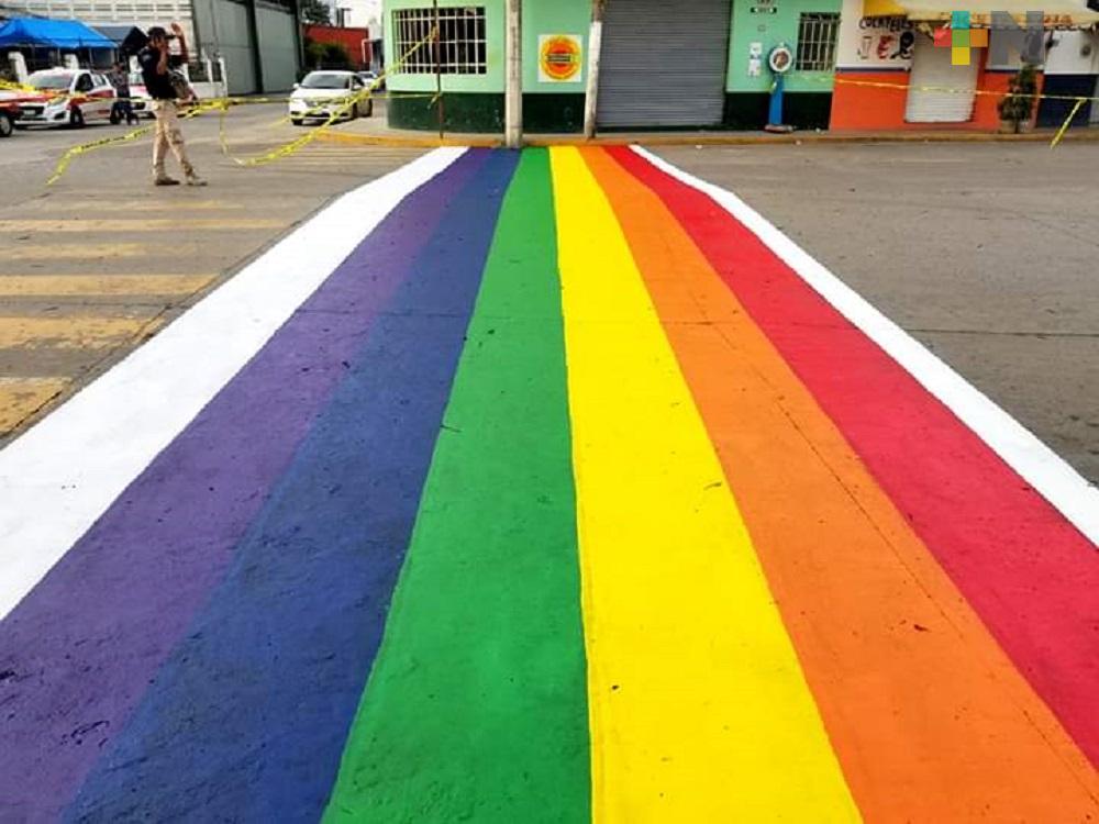 San Rafael, Ver.- En el marco del mes del orgullo LGBTTTIQ y del Día Internacional de la Diversidad Sexual que se conmemora el 28 de junio, el sistema municipal para el Desarrollo Integral de la Familia (DIF) de San Rafael, que preside la doctora Andrea Riande Sánchez, se dio a la tarea de pintar un cruce peatonal con los colores de la bandera gay, que representa la diversidad sexual.