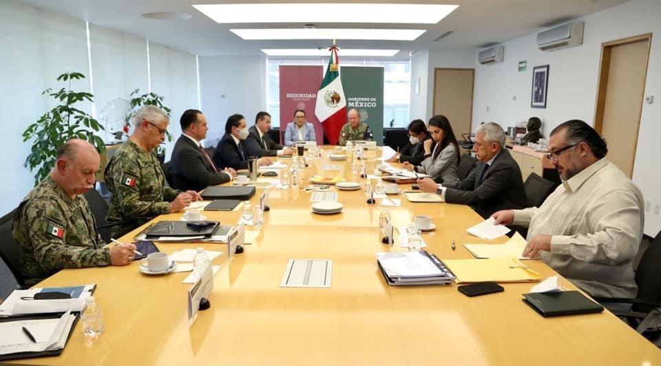 la Secretaria de Seguridad y Protección Ciudadana, Rosa Icela Rodríguez Velázquez, el Almirante Secretario de Marina, José Rafael Ojeda Durán y el Sub Secretario de Seguridad Pública, Ricardo Mejía Berdeja.