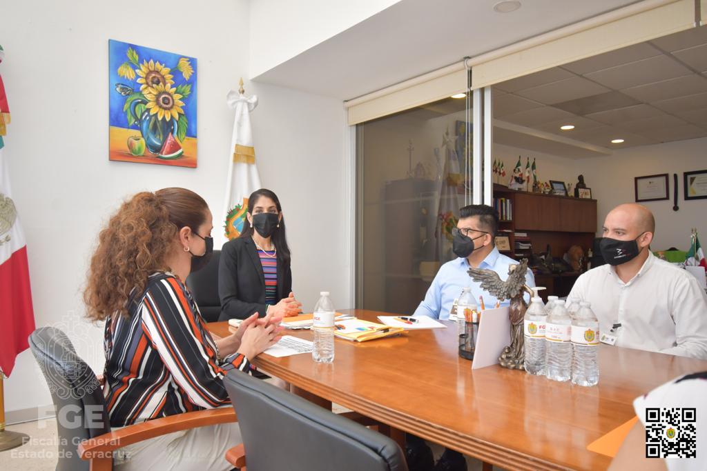 Xalapa, Ver.- La Fiscal General del Estado, Verónica Hernández Giadáns, sostuvo reunión de trabajo con funcionarios del grupo Mobility ADO en oficinas centrales del organismo autónomo.