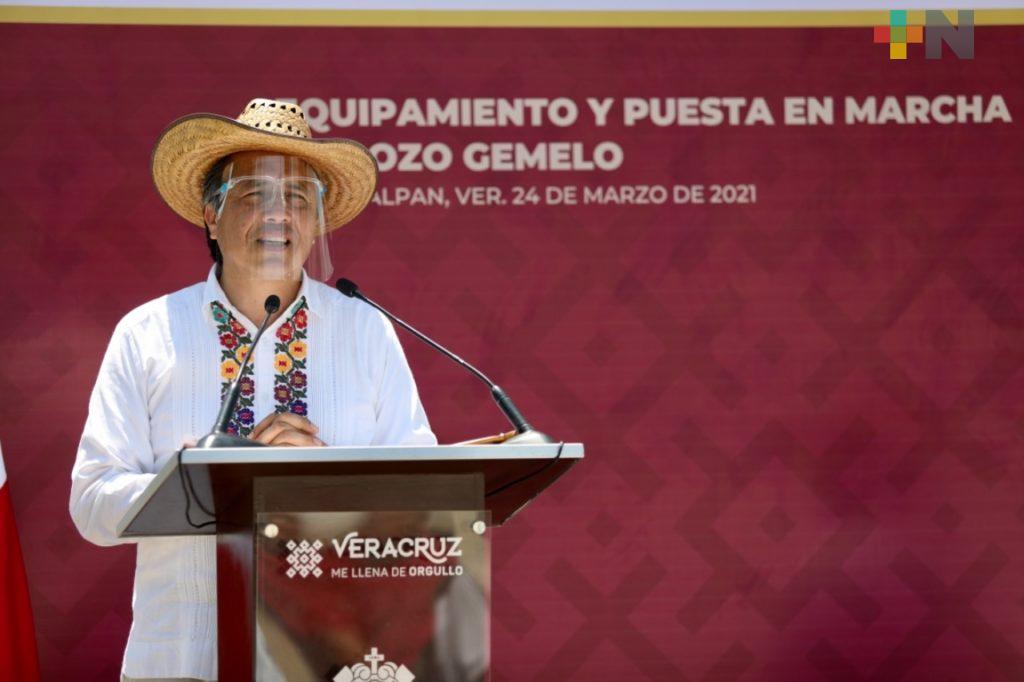 Más tarde, el mandatario puso en marcha el equipamiento del Pozo Gemelo en Tlacojalpan, que significó una gran inversión en material eléctrico, mecánico e hidráulico por parte de la Comisión del Agua del Estado de Veracruz (CAEV) en beneficio de al menos cuatro mil habitantes.