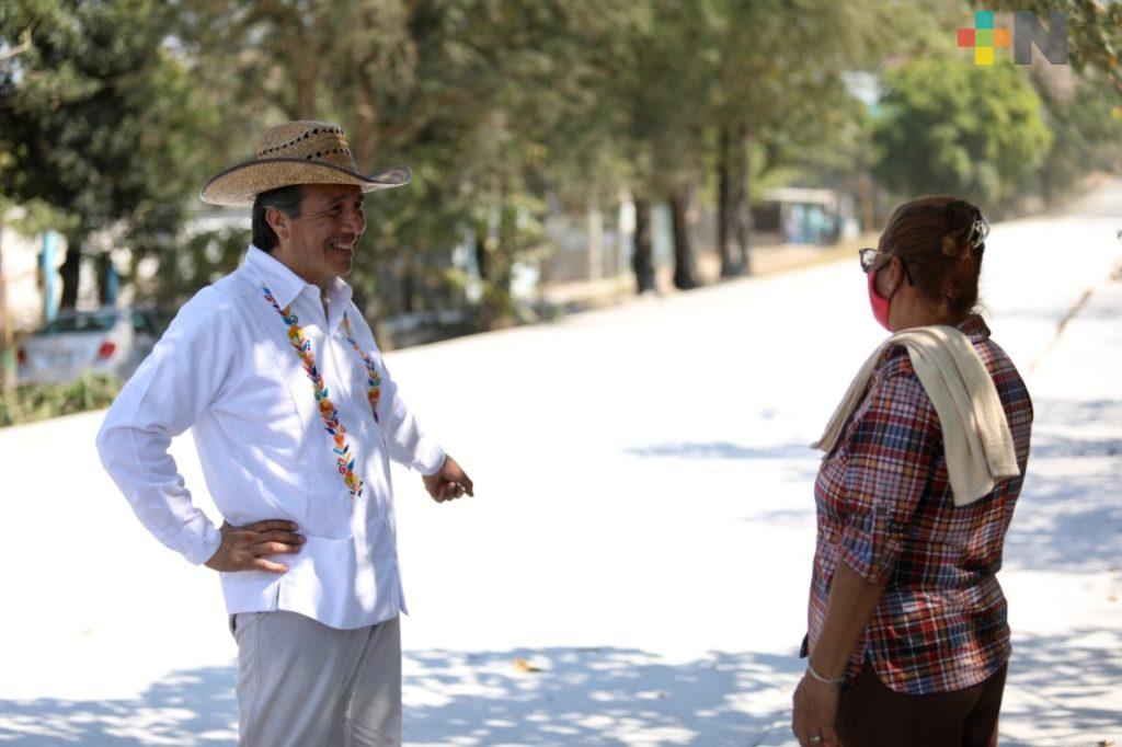 A continuación, el Gobernador supervisó la conclusión de trabajos de pavimentación en calles como Ignacio Zaragoza (Chacaltianguis) y Zamora (Tlacojalpan), en las que la Secretaría de Infraestructura y Obras Públicas (SIOP) incluyó guarniciones y banquetas para el servicio de más de ocho mil veracruzanos.