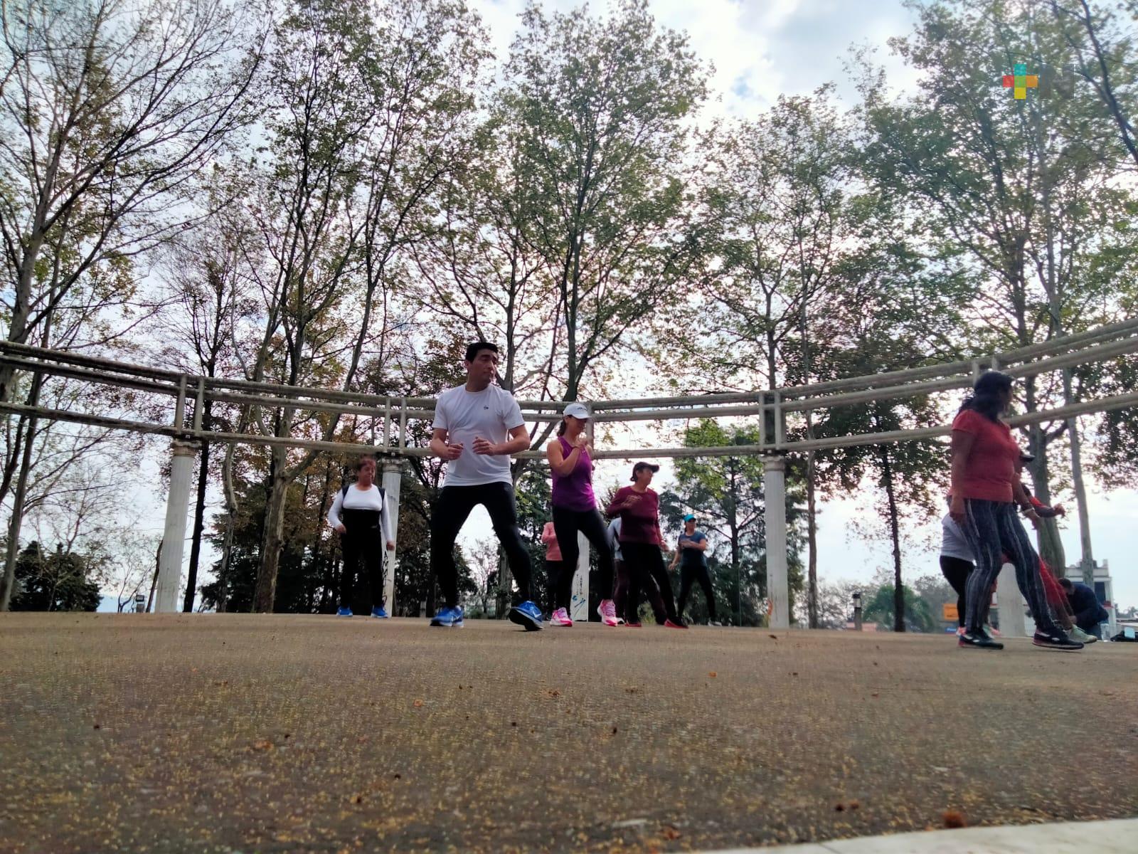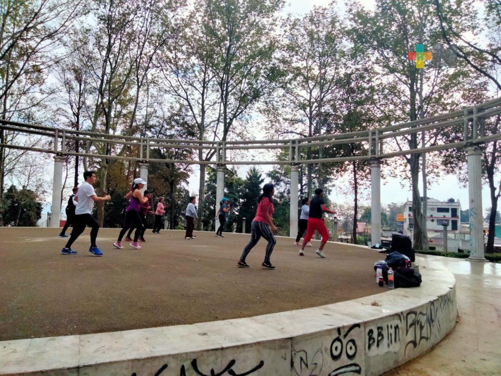 En Xalapa, un grupo de zumba adaptó sus rutinas al aire libre en el lugar conocido como “la olla”, que se ubica en la glorieta de la avenida Xalapa, frente a la Secretaría de Finanzas y Planeación (Sefiplan).
