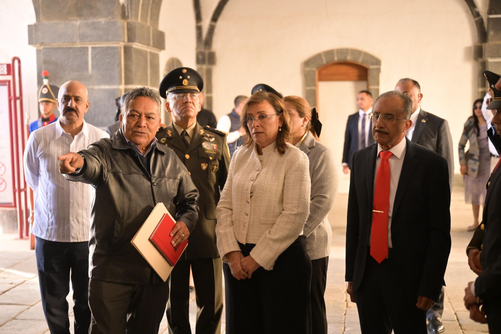 También asistieron el comandante de la Sexta Región Militar, Héctor Ávila Alcocer; el jefe de Estado Mayor de la Primera Región Naval, Pablo Gabriel Alcántara Silva; el coordinador estatal de la Guardia Nacional, Vicente Dimayuga Canales; la senadora Raquel Bonilla Herrera y el senador Manuel Huerta Ladrón de Guevara, junto con secretarios del gabinete estatal, integrantes de la Federación del Pentatlón Militarizado y alumnos de diversas escuelas de Perote.