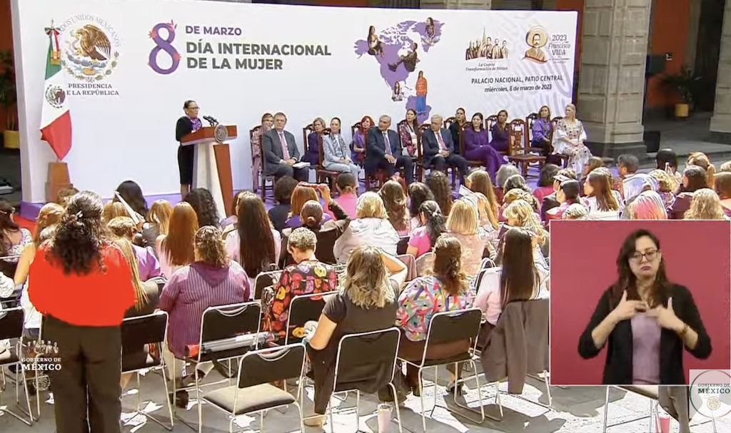 Ciudad de México.- Al encabezar el acto conmemorativo del Día Internacional de la Mujer celebrado en el patio central de Palacio Nacional, el presidente de México, Andrés Manuel López Obrador aseguró que «las mujeres son el motor del cambio en el país».