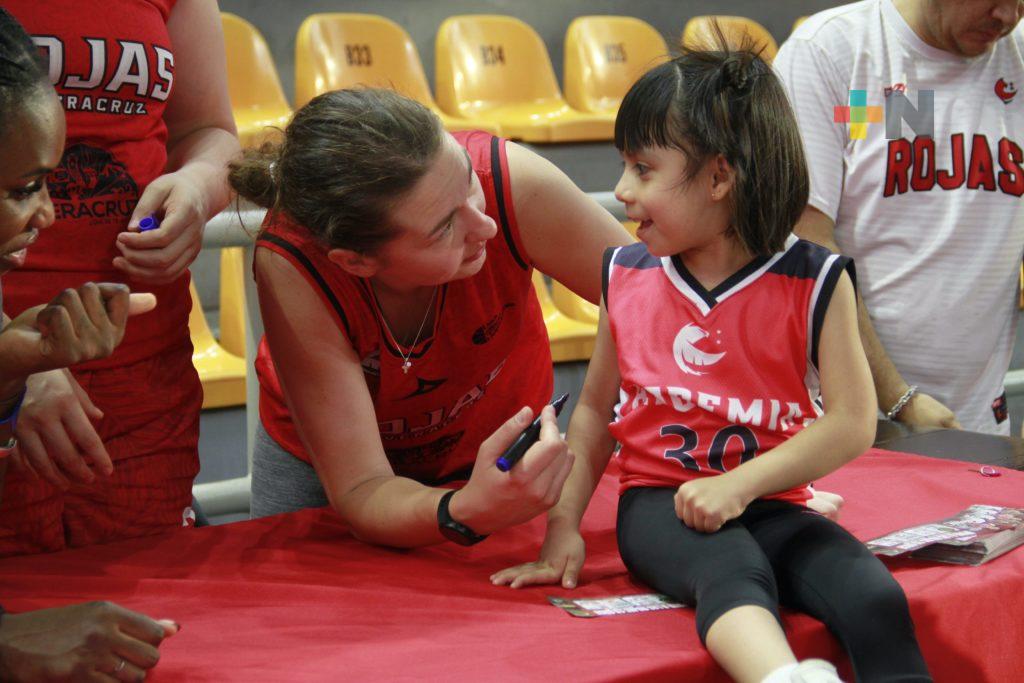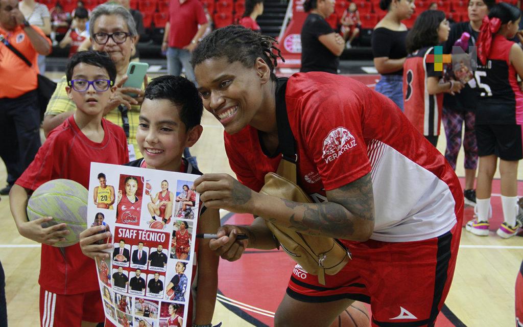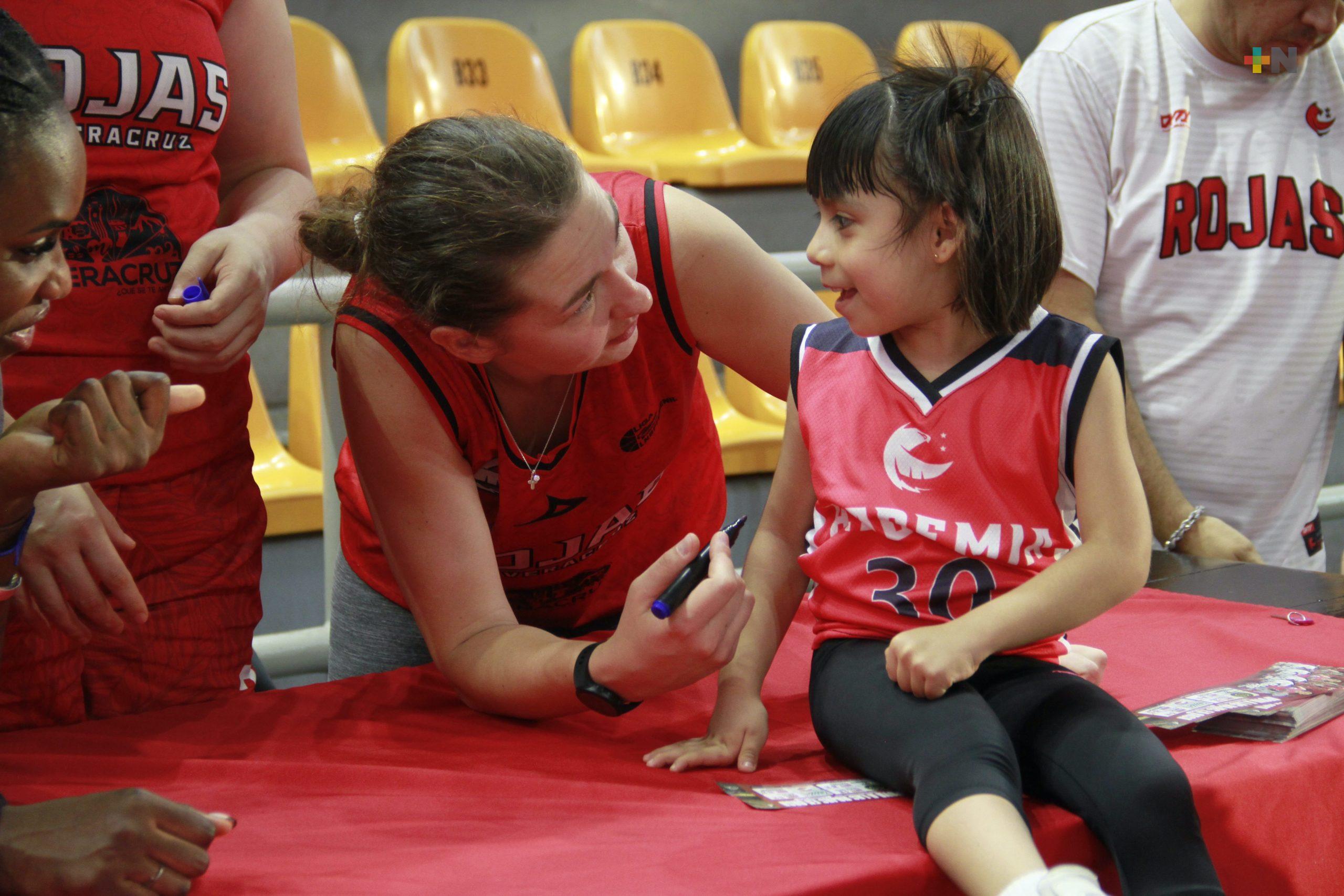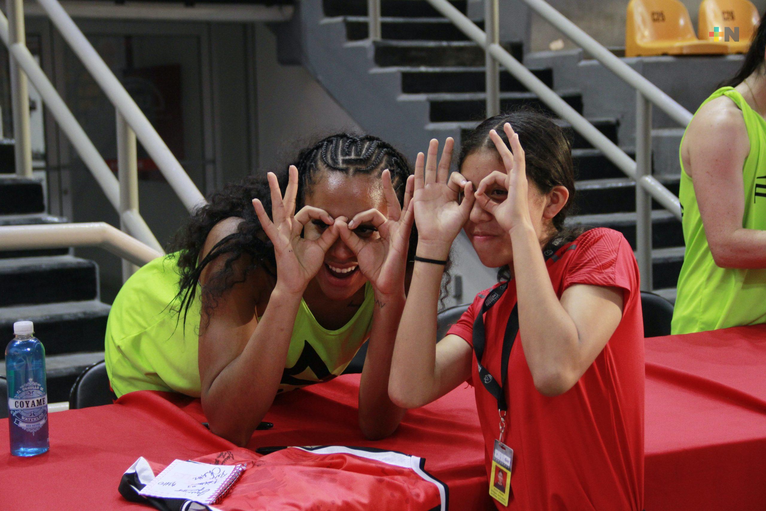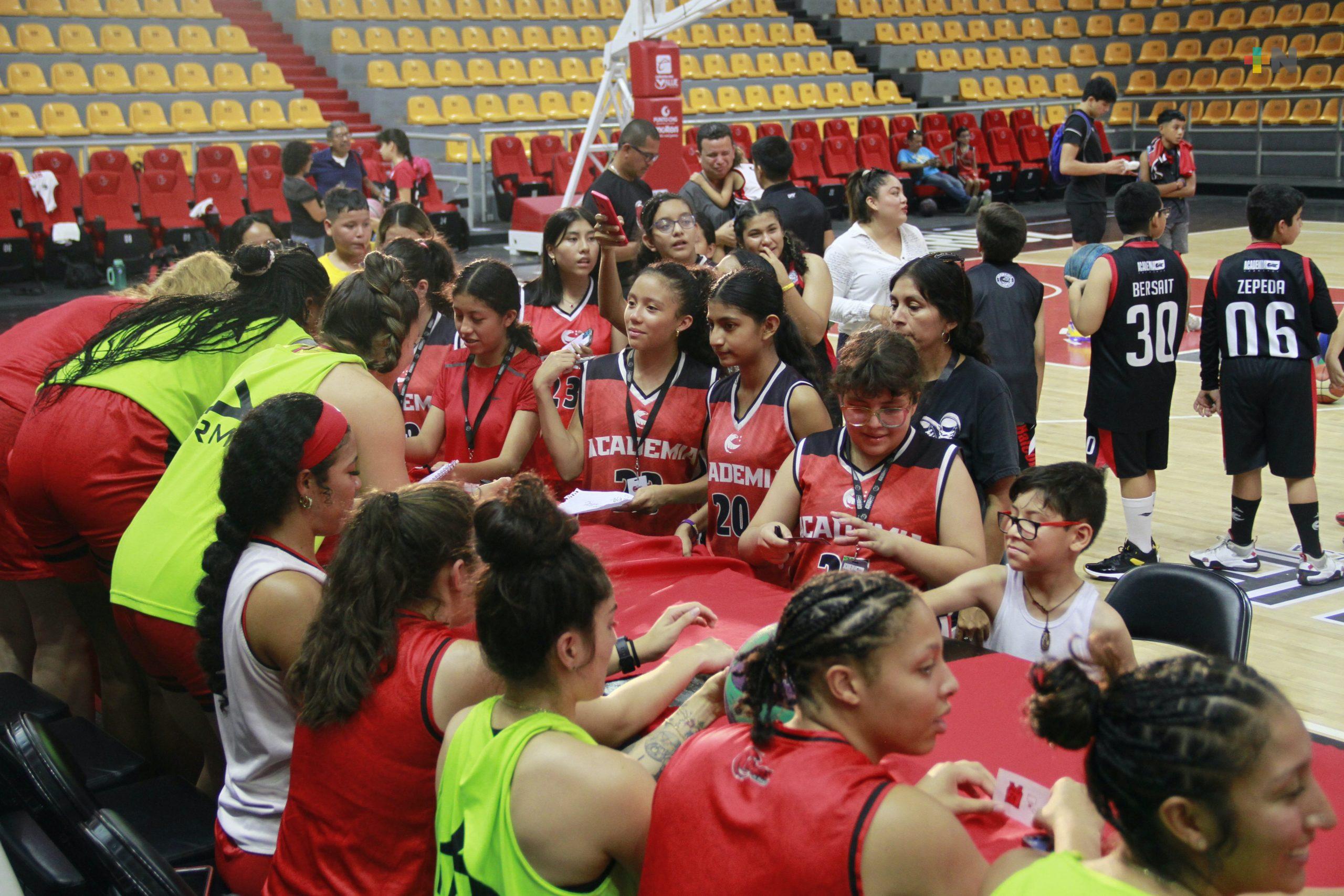 Niñas y niños alumnos de la Academia Halcones Rojos de Veracruz tuvieron la oportunidad de conocer a las basquetbolistas profesionales de las Rojas de Veracruz.