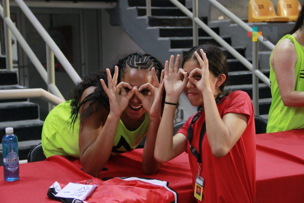 Las catorce jugadoras de las Rojas se dieron el tiempo de atender y conocer a sus aficionados más jóvenes. Por su parte, el coach Israel Zermeño se dijo orgulloso de representar a su “segunda casa” Veracruz.