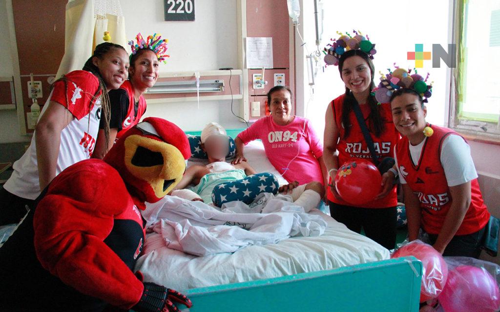 Veracruz, Ver.- Como parte de las actividades previas al Día del Niño, las basquetbolistas de las Rojas de Veracruz visitaron a los niños internados en el Hospital del Instituto Mexicano del Seguro Social.
