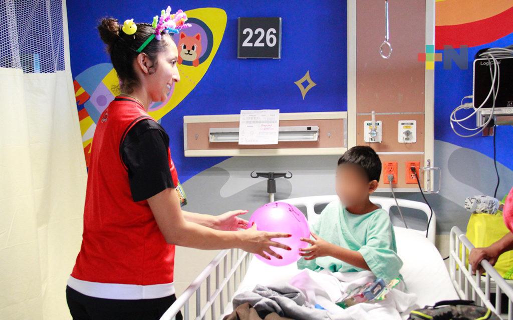 Acompañadas por el grupo de ludoteca del voluntariado del IMSS en el UMAE Hospital número 14 ‘Adolfo Ruiz Cortines’, las jugadoras llevaron alegría a los pequeños que se encuentran recibiendo tratamiento médico.