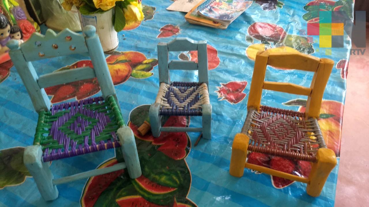 También hace sillas con tejido plástico o de palmilla para comedor y muebles o sillas en miniatura, además de utensilios de madera para la cocina.