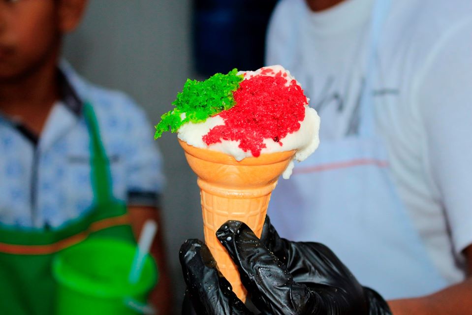 Al fondo la iglesia de San José y cientos de personas que degustan la inigualable nieve coco que caracteriza a la ciudad de Lerdo de Tejada, ubicada en la zona sur de Veracruz