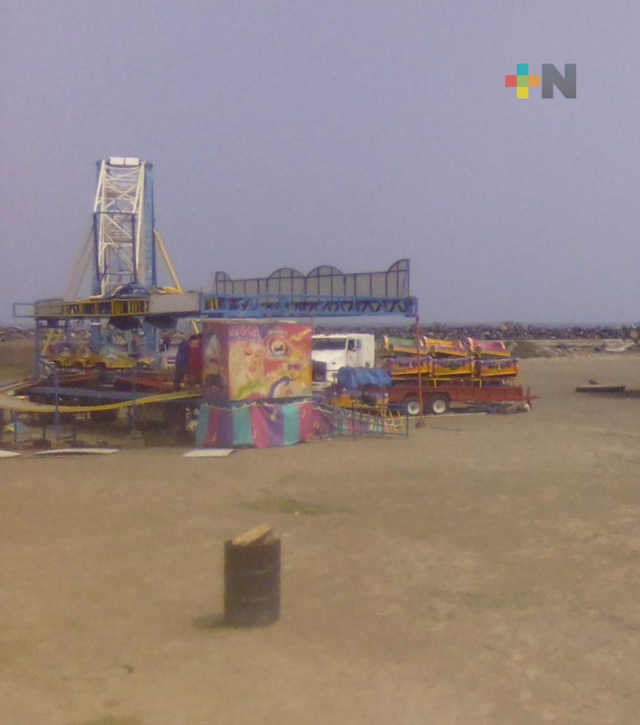 Boca del Río, Ver.- En el municipio de Boca del Río comenzó el levantamiento de una feria instalada en la playa «La Bamba», el cual funcionó como un escenario de filmación de una serie.