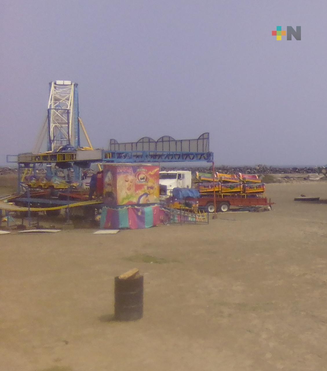 Boca del Río, Ver.- En el municipio de Boca del Río comenzó el levantamiento de una feria instalada en la playa «La Bamba», el cual funcionó como un escenario de filmación de una serie.