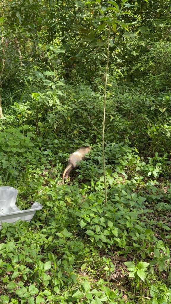 “Liberamos cuatro ejemplares o un poquito más, si hago esa observación de un poquito más, porque uno de los ejemplares tlacuaches traía crías, aproximadamente ocho crías traían su marsupio. Entonces, bueno, de pie, por así decirlo, liberamos a cuatro tlacuaches, dos adultos y un juvenil, y a un pájaro carpintero (…)fueron recuperados por colaboraciones que tenemos con otras instituciones, y en algunos casos, pues, ejemplares que nos llevan las personas y que nosotros los criamos a mano”.