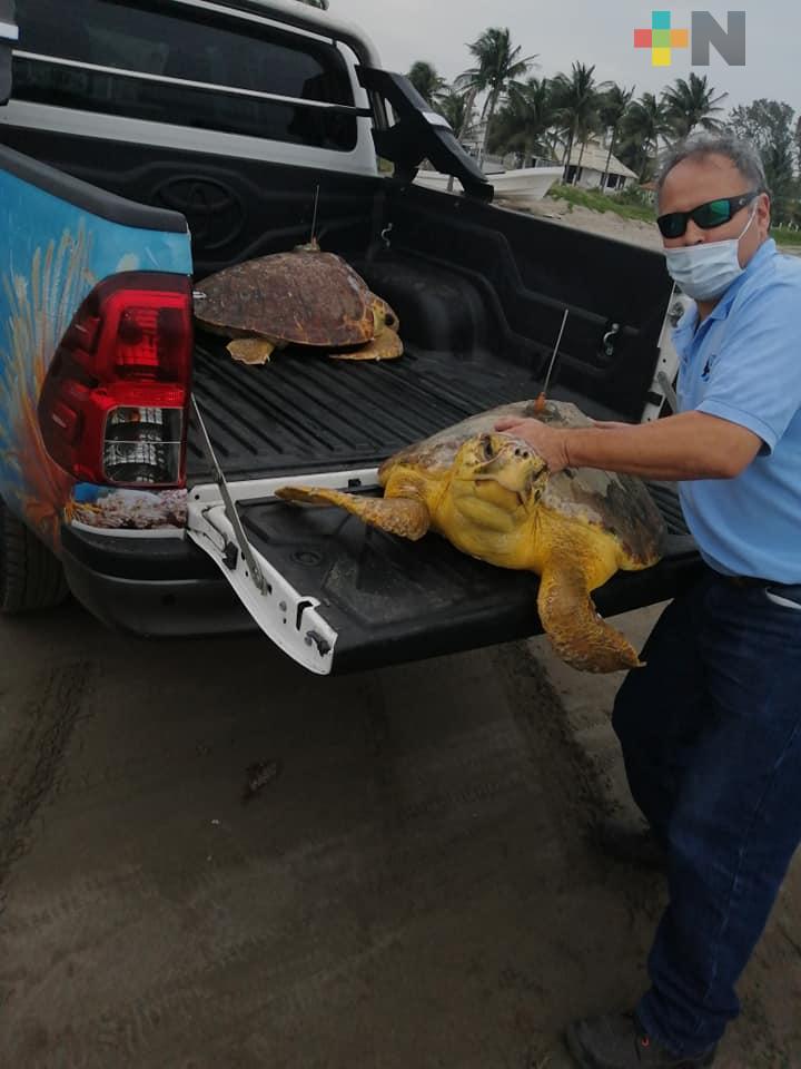 Liberan tres tortugas con transmisor satelital en playas de Veracruz