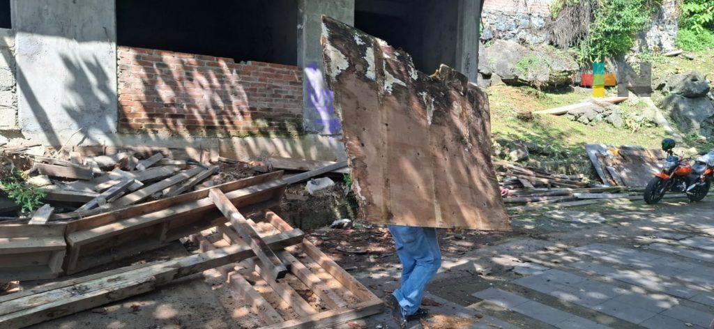 Xalapa, Ver.- Vecinos del barrio de El Dique en Xalapa realizaron una jornada de limpieza, desde retirar basura, escombro y cimbra de madera de una casa en construcción abandonada a la orilla del segundo lago, en el paseo de los Lagos de Xalapa, que ha servido de refugio para indigentes y que en los últimos meses ha representado diferentes peligros.