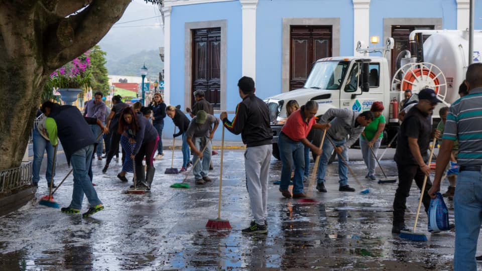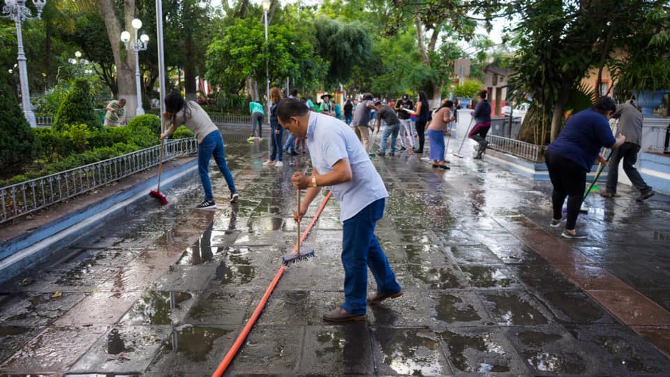 Comerciantes realizan jornada de limpieza en el Parque de Coatepec
