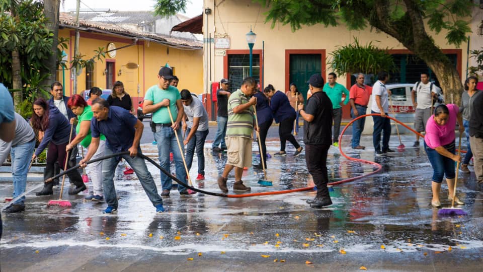 Coatepec, Ver.- La mañana de este jueves comerciantes y betuneros que laboran en el Parque Miguel Hidalgo, realizaron una jornada de limpieza en coordinación con la Regiduría Primera, Dirección de Comercio y Comisión Municipal de Agua y Saneamiento de Coatepec.